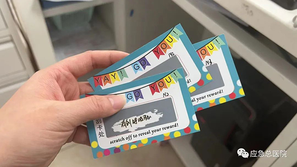 为体现考核公平公正,专门制作了刮刮卡,每一名护士通过刮刮卡的形式现场抽取考核内容,护士长在考试前精心安排高年资护士一对一精准教学指导低年资护士,在考核练兵前形成了浓厚的学习氛围。考核当日,每一名护士全神贯注,按照操作标准逐步展示各项技能。