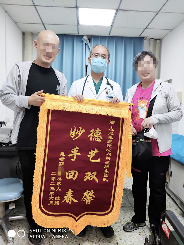 为表达救命之恩,患者和家属专门送来一面锦旗:“妙手回春,德艺双馨!”
