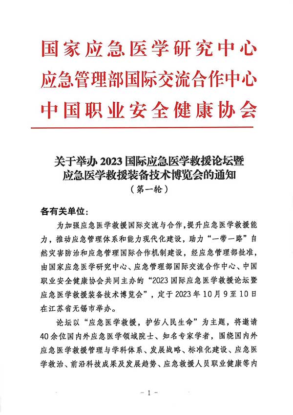 关于举办2023国际应急医学救援论坛暨应急医学救援装备技术博览会的通知(第一轮)
