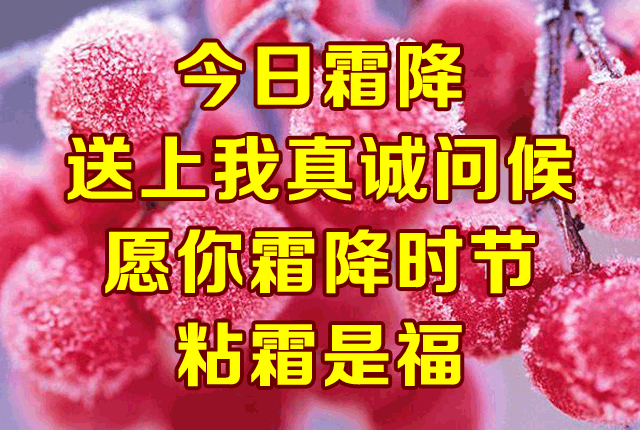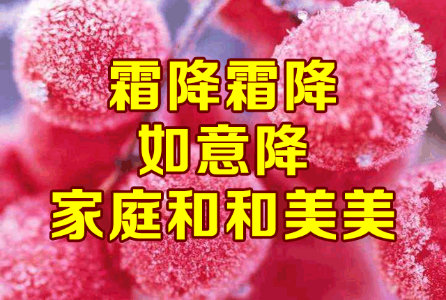 古籍《二十四节气解》中说:“气肃而霜降,阴始凝也。”可见“霜降”表示天气逐渐变冷,开始降霜。气象学上,一般把秋季出现的第一次霜叫做“早霜”或“初霜”,而把春季出现的最后一次霜称为“晚霜”或“终霜”。从终霜到初霜的间隔时期,就是无霜期。也有把早霜叫“菊花霜”的,因为此时菊花盛开,民间会举行菊花会,以表达对菊花的喜爱和崇敬。