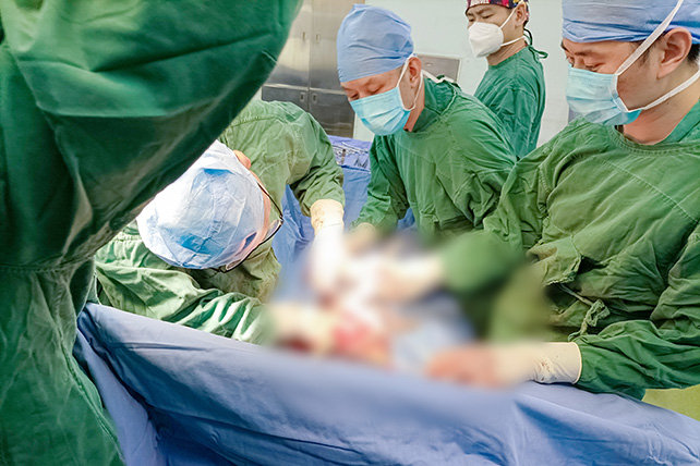 “血压继续下降,需快速积极输注红细胞。”麻醉医生尽全力维持患者生命体征平稳,而此时的尘肺病合并胸腔巨大肿瘤切除手术已经进行了6小时,手术台上,石殿鹏主任紧急处理供瘤血管,由于经验丰富,操作精细,一个7斤重20公分的瘤子被完整切除,大家一直悬着的心终于松了一口气。这是5月10日应急总医院胸外肿瘤科的一个手术现场缩影。'手术进行中' 家住山西的魏大叔今年56岁,是三十几年的煤矿工人,被尘肺病困扰多年。今年春节,魏大叔出现胸闷并逐渐加重,在当地医院检查胸部CT显示,一个“大瘤子”占满胸腔的三分之二体积。这对一个家庭来说无疑是个致命的打击,原来的大汉,现在躺着睡觉都困难了;眼见魏大叔症状加重,儿子带着父亲来北京就诊,在多家医院求医,给出一致的答案:手术难度太大,生还机会较小…… 走投无路之际,魏大叔多方打听到应急管理部应急总医院胸外肿瘤科。因为应急总医院是国家应急医学研究中心,对于复杂病例多学科会诊诊疗模式较为成熟,胸外肿瘤科石殿鹏主任医师自建院建科,一直致力于职业病特殊人群的疾病筛查、诊治,擅长常规手术腔镜外科治疗、复杂手术、纵隔肿瘤、合并尘肺病的外科治疗。'病情分析' 患者来院后门诊CT显示,瘤体巨大几乎占满整个胸腔,血管受压很难辨认,石主任首先组织科内医师进行病例讨论,大家一致认为:患者自2月份就诊以来,肿瘤生长迅速,药物治疗无效,手术是患者唯一的希望,但手术风险很大。石主任立即组织MDT会诊,多次与呼吸内镜团队、介入科、麻醉科、重症监护室、普外科沟通病情,针对手术前的准备及术中可能出现的情况、术后处理措施,多次交流诊疗意见。 胸外肿瘤科知名专家孙克林教授作为应急总医院特聘技术主任,结合自己丰富的临床经验提出了手术中可能遇到复杂情况、切口选择、体位、出血避免措施等重要手术细节的处理。'多学科专家会诊' 手术如期进行,核对、翻身,每一步大家默契进行,一点点推进;开胸后,切除瘤子远比预期的还要复杂,肿瘤太大,暴露困难;其次弥漫性出血,渗血明显。直到“大瘤子”充分游离、切除出来,有惊无险,充分止血后,血压、心率才渐趋平稳,手术结束,看更衣室里石主任伟岸的后背已被汗水浸透。将魏大叔推入重症监护病房,郑山海主任团队呼吸机辅助通气,给予补液、维持生命体征平稳,一系列诊治,患者平稳度过了围手术期难关,第二天转入普通病房,张娜护士长带领护理团队悉心照顾,协助患者咳嗽、咳痰,加强呼吸道管理,术后患者平稳恢复。 患者病理结果显示:胸腔内骨外骨肉瘤。自1941年首次报道,国内外报道不超过百例,与患者既往尘肺病病史不无关系。5月18日,应急总医院医务处再次组织多学科会诊,回顾病例,对整个诊疗过程进行系统总结,并对患者后续治疗制定了系统方案。此次病例的惊险之旅,体现了应急总医院多学科诊疗模式在尘肺病特殊群体、复杂胸科疾病的特殊优势及发展趋势,也标志着应急总医院在救治尘肺病和复杂胸科疾病方面实现了技术新突破。策划:融媒体中心来源:胸外肿瘤科作者:李新审核:石殿鹏编辑:莫鹏