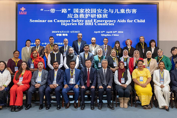 日前,由商务部主办,国家应急医学研究中心(应急总医院)牵头联络,山东外贸职业学院承办的“一带一路”国家校园安全与儿童伤害应急救护研修班在青岛开班,来自阿富汗、孟加拉国、保加利亚、埃及、伊拉克、巴拿马、萨摩亚、特立尼达和多巴哥的30名学员参加了研修。该班系“一带一路”应急管理千人培训计划中的首个应急医学类援外人力资源开发合作项目。国家应急医学研究中心主任吕国忠出席开班仪式并讲话。 开班仪式合影留念 国家应急医学研究中心主任吕国忠出席开班仪式并讲话 中方在2023“一带一路”自然灾害防治和应急管理国际合作部长论坛期间宣布了14项合作举措,包括开展“一带一路”应急管理千人培训计划。计划旨在积极与共建国家开展应急管理领域交流合作,提升互通互认水平。本次研修班聚焦校园安全和儿童伤害的应急救护,对充分发挥一带一路平台优势,探索建立以保障人的生命安全为核心的国际合作机制,积极促进各国有效应对校园突发安全事件、助力维护社会稳定、保障少年儿童健康成长,具有重要意义。 参观学习 在研修班上,国家应急医学研究中心应急医学建设办公室主任刘智、“小聆”心理健康平台专家组副组长吴坎坎分别就《校园应急医学培训体系建设》以及《校园心理安全建设》分享了中国经验。学员们展现了极大的学习热情,积极互动,并结合本国实情进行了深入研讨;刘智主任向学员们赠送了由国家应急医学研究中心编写的相关科普书籍。 集体留影 4月15日,学员们到国家地震紧急救援训练基地,参观了废墟训练场、防灾减灾科普馆、虚拟仿真馆等设施;到中国科学院心理研究所参观了心理梦工厂,考察了心理健康测量、评估、康复技术。 互动交融 参观当天,恰逢埃及教育部学员Fayez的生日,会务组精心准备了蛋糕,在场学员唱响了中文、英文、阿拉伯语三种语言的生日快乐歌,共同送上美好的生日祝福。 暖心举动 氛围浓厚 研修班将持续到4月24日,此后还将继续在校园应急救护、应急安全等方面开展交流。 来源:国家应急医学研究中心 作者:祖洁琛 审核:刘智 编辑:莫鹏 监制:彭雪征